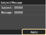 3 | Enter the subject using the numeric keys, and tap <Apply>. Tapping <A/a/12> toggles the input modes. |