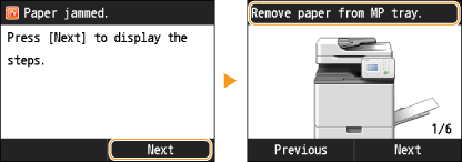2 | Gently pull out the paper from the paper drawer. Paper may be jammed in a location other than the paper drawer displayed on the display. Pull out each drawer and check whether there is any jammed paper. |