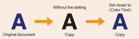 The settings are applied to color copies when <Original Type> is set to <Text/Photo/Map> or <Text> ( Selecting Document Type). |