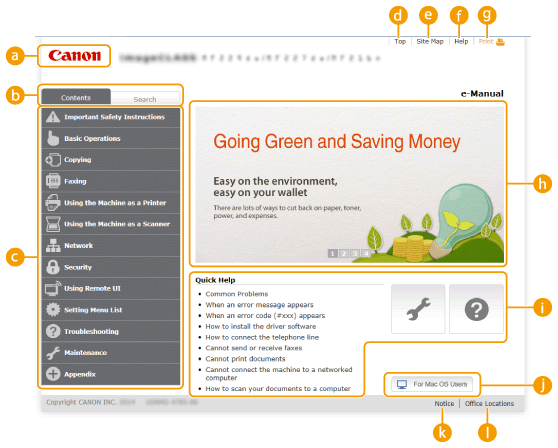 Click to display information on how to view the e-Manual, how to perform a search, and other information.
