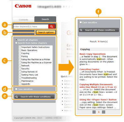 Enter a keyword or keywords and click to display the search results in the search dialog box ().