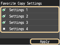Select the check box for all settings to be displayed in the Home Screen and tap <Apply>.