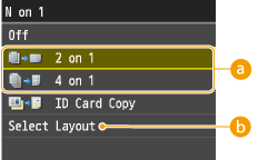 , but the edges of the document might not be copied if you increase it.<2 on 1>/<4 on 1> is not available when using <Erase Frame> and <ID Card Copy>.