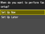 If you tap <Set Up Later>, the receive mode is set to <Auto>. Later, when you want to configure the fax settings, display the fax setup screen by tapping <Menu>  <Fax Settings> <Fax Setup Guide>.