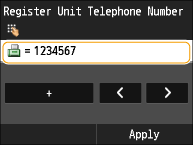 Enter the fax number using the numeric keys (Entering Text), and tap <Apply>.