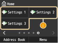 ![]() | <Favorite Copy Settings> <Favorite Fax Settings> <Favorite Scan Settings>Displays frequently used settings registered for each of the Copy, Fax, and Scan functions. <ID Card Copy> is pre-registered to <Settings 1>. Registering Frequently Used Copy Settings |