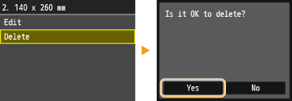If paper sizes <1> to <3> have already been registered, either change or delete the setting to continue. The procedures for changing and deleting these settings are described below.