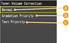 <Toner Volume Correction> is not available for printing JPEG/TIFF files.