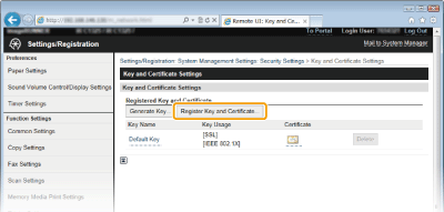 Click [Register Key and Certificate] or [Register CA Certificate].