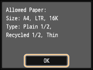 Check that the size and type of paper displayed on the screen is loaded in the machine, and tap <OK>.