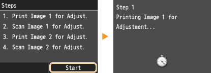 This adjustment improves the result of copies and printing from a USB memory device. For correcting copy images, an adjustment image will be printed and scanned. Note that you cannot perform this adjustment while performing some functions, including, scanning, and printing.