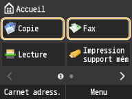 Tapez sur les paramètres fréquemment utilisés dans Copier/Télécopieur/ Numériser.
