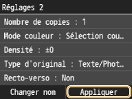 Spécifiez les paramètres et tapez sur <Appliquer>.
