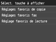 Si vous supprimez un paramètre fréquemment utilisé qui est enregistré pour s'afficher sur l'écran d'accueil pour <Copie>, <Fax> ou <Lecture>, le bouton de l'écran d'accueil sur lequel il est enregistré est également supprimé.