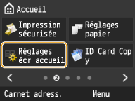 <Préférences> <Réglages d'affichage> <Réglages affichage boutons d'écran accueil>. |