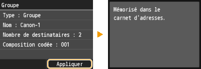 Répétez les étapes 9 et 10 jusqu'à avoir enregistré tous les destinataires souhaités, puis tapez sur <Appliquer>.