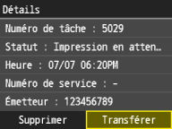 Tant que la fonction de réception en mémoire n'est pas désactivée, les documents en mémoire ne sont pas supprimés même s'ils sont transférés ; un document peut être transféré à plusieurs reprises.