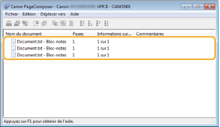 Pour plus d'informations, cliquez sur [Aide] dans l'écran de la fonction Canon PageComposer.