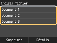 Si les documents sécurisés de deux ou plusieurs utilisateurs sont placés en mémoire, l'écran <Choisir utilisateur> s'affiche avant l'écran <Choisir fichier>. Tapez sur votre nom d'utilisateur.