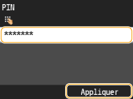 Saisissez le code PIN à l'aide des touches numériques et tapez sur <Appliquer>.