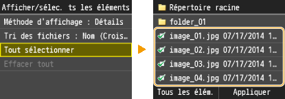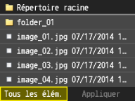 Si vous avez sélectionné un fichier avant de taper sur <Tous les élém.>, vous ne pouvez sélectionner que des fichiers du même format.