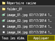 Si un dossier d'un périphérique mémoire USB comporte de nombreux fichiers, la numérisation des fichiers images peut être assez longue. Il est recommandé de supprimer les fichiers inutiles du périphérique mémoire USB à partir de l'ordinateur ou de les déplacer vers un autre dossier.