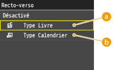 Vous pouvez réaliser des impressions recto verso. Tapez sur la position de la reliure.