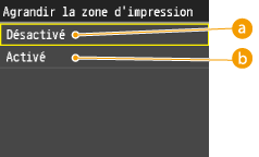 <Lissage 2> effectue un lissage plus prononcé que <Lissage 1>. Si <Lissage 1> est sélectionné et que les réglages ne sont toujours pas imprimés de manière lisse, sélectionnez <Lissage 2>.
