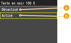 Si <Activé> est sélectionné pour <Texte en noir 100 %>