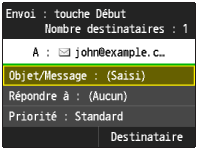 Tapez sur <Objet/Message>.