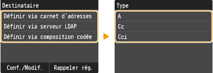 Pour en savoir plus sur l'utilisation du carnet d'adresses, reportez-vous à la section Spécification d'un carnet d'adresses.