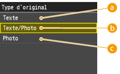Vous pouvez sélectionner la qualité d'image de la numérisation selon le type de document (document texte, documents comportant des diagrammes ou des graphiques ou photos de magazine, par exemple).