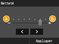 Vous pouvez modifier la netteté de l'image avant de l'envoyer. Augmentez la netteté pour améliorer la netteté d'un texte flou ou de lignes floues et diminuez-la pour améliorer l'apparence de photos de magazine.