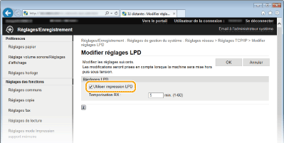 Cochez la case pour imprimer via LPD. Si tel n'est pas le cas, désactivez cette case. [Utiliser impression RAW]