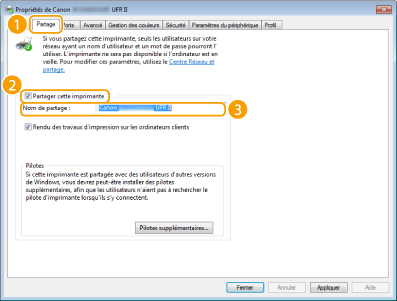 Utilisation de la gestion des numéros de service avec un serveur d'impressionIl est nécessaire d'ajouter Canon Driver Information Assist Service au cours de l'installation du pilote d'imprimante.