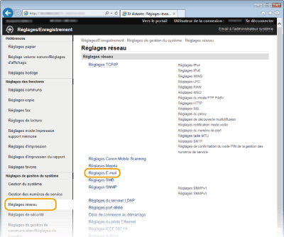 [Réglages E-mail].
