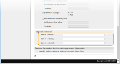 Saisissez le nom de contexte dans la limite des 32 caractères alphanumériques autorisés. Trois noms de contexte au maximum peuvent être enregistrés. |