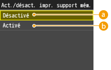 Active la fonction permettant d'imprimer les données stockées sur un périphérique mémoire USB.