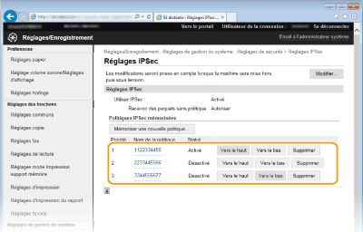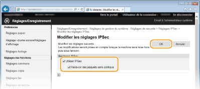 Vous pouvez activer ou désactiver les communications IPSec à partir de <Menu>. Utiliser IPSec