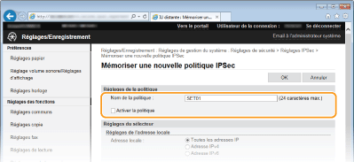 Pour identifier la politique, saisissez un nom composé de 24 caractères alphanumériques maximum dans la zone de texte [Nom de la politique].