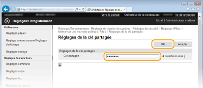 Saisissez une clé pré-partagée composée de 24 caractères alphanumériques maximum et cliquez sur [OK].