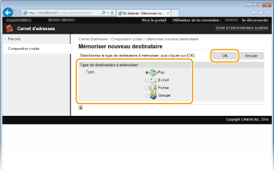 Vous ne pouvez définir les réglages que si vous êtes connecté en tant qu'administrateur système.