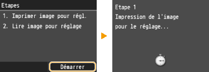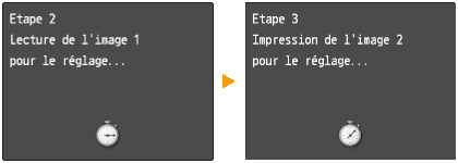 L'image de réglage est numérisée et l'opération de réglage commence. Environ 10 secondes plus tard, une deuxième image de réglage est imprimée.
