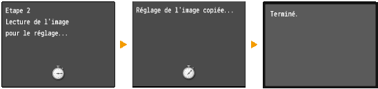 L'image de réglage est numérisée et l'opération de réglage commence. Quelques minutes plus tard, le réglage se termine.