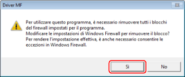 Se viene visualizzata la seguente finestra di dialogo durante l'installazione, selezionare [Sì]. Il blocco di Windows Firewall viene rimosso e si può procedere con l'installazione.