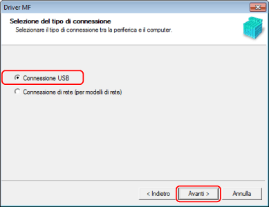 Se viene visualizzata la seguente schermata, selezionare [Connessione USB] → fare clic su [Avanti].