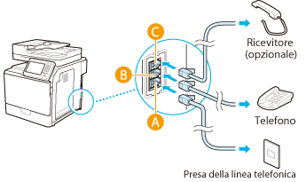 Collegare il cavo telefonico alla presa telefonica sulla macchina (