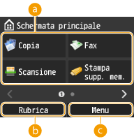 Pulsanti di selezione funzioniToccare per attivare le funzioni di copia, fax, scansione o stampa da USB.