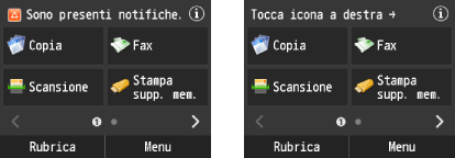 ![]() Quando si visualizza <Sono presenti notifiche.> oppure <Tocca icona a destra ->>