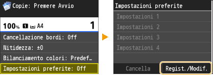 Per prima cosa si devono registrare le impostazioni utilizzate frequentemente per copia, fax e scansione. ![]() |
